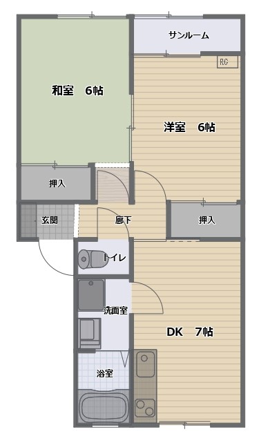 シャワー/追い炊き/専用浴室(トイレ別)/専用トイレ(水洗)/洗面(浴室別)/暖房便座/給湯(ガス)/専用台所/ガスコンロ設置可/シューズボックス/照明/冷暖房/インターフォン/サンルーム/電話設置可/LPガス |